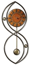 06879This wrought iron clock frame features a black crackle finish with a warm wood tone clock face and also features a working pendulum and quartz movement. The blending of materials in this piece creates a complex texture and contemporary look. Features: -Designed by Carolyn Kinder -Working pendulum -Wood tone clock face -Crackle finish -Quartz movement -Overall dimensions: 12'' W x 30'' H x 2.5'' D About Uttermost The Uttermost Company was founded in 1975 by Bob and Belle Cooper and is still 100pct family owned today. Uttermost is now the largest manufacturer of framed mirrors in the United States, and one of the largest manufacturers of lamps, wall art, and clocks. The growth of Uttermost is primarily due to their commitment to three things superior service, maximizing the value of the products they make, and treating their employees and sales representatives as partners in business. Their mission is simple... to make great home accessories at a reasonable price. This has been their guiding light since the day they started twenty eight years ago.