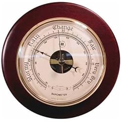5 Inch Cherry BarometerThis small round wall mounted barometer is ideal for spots where a smaller barometer is required. This is a German-made barometer and is a precision instrument. Single bellows action.Brass bezel around dial.Mounted on a cherry plaque for wall mounting.Works for up to 3000ft elevation.Dimensions: Diameter 5-3/8"?x Depth 1-5/8"