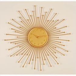 BO0979 Surprise Wall Clock Features:-Wall clock. -Decorative starburst design with braided rods. -Metal frame. -Goldtone finish. -Requires one AA battery. -5 Year warranty. -Overall Dimensions: 20'' H x 20'' W x 1.75'' D.